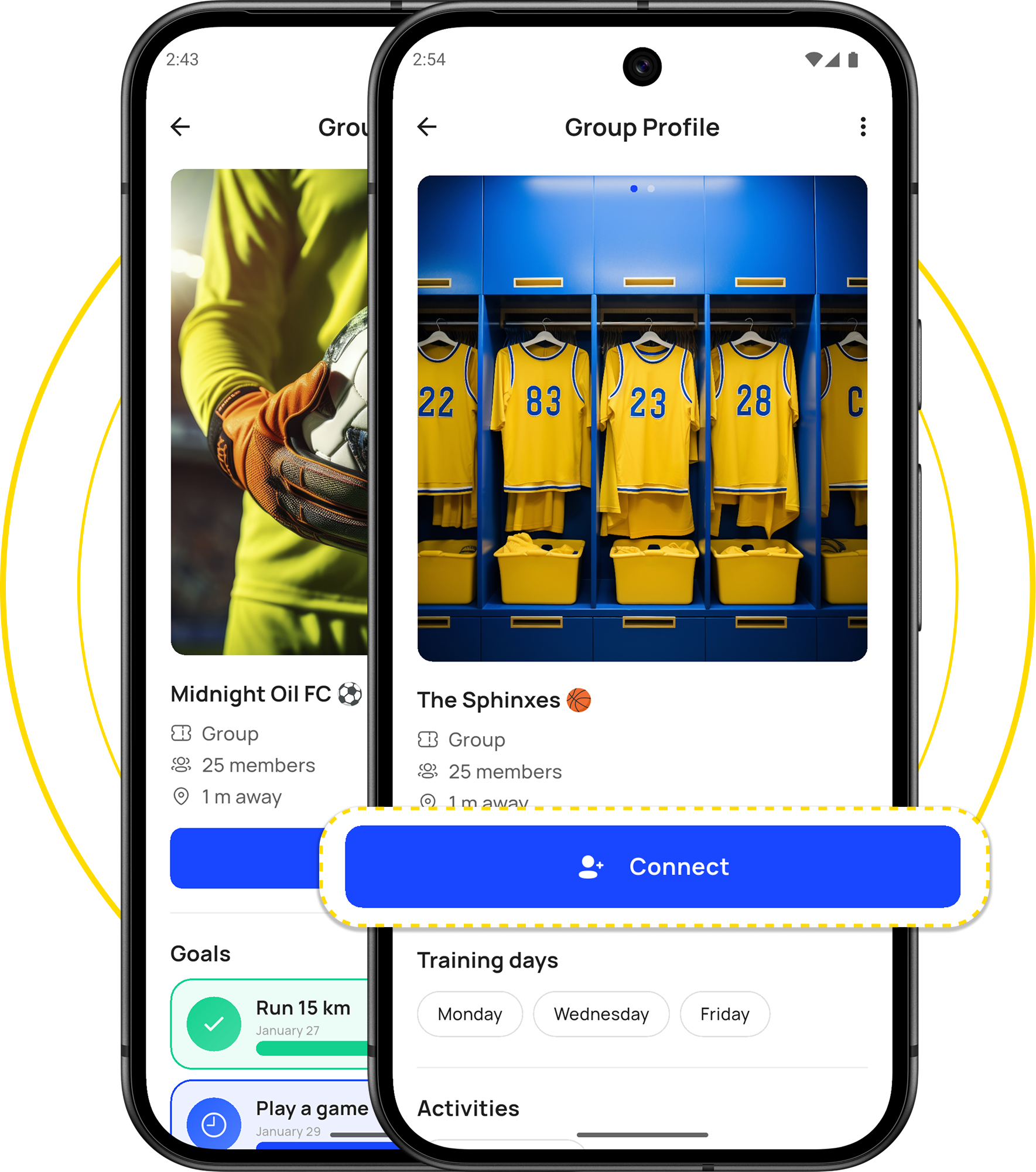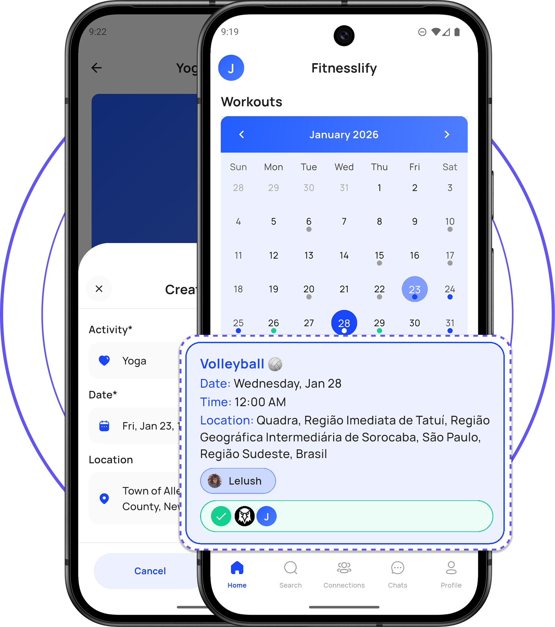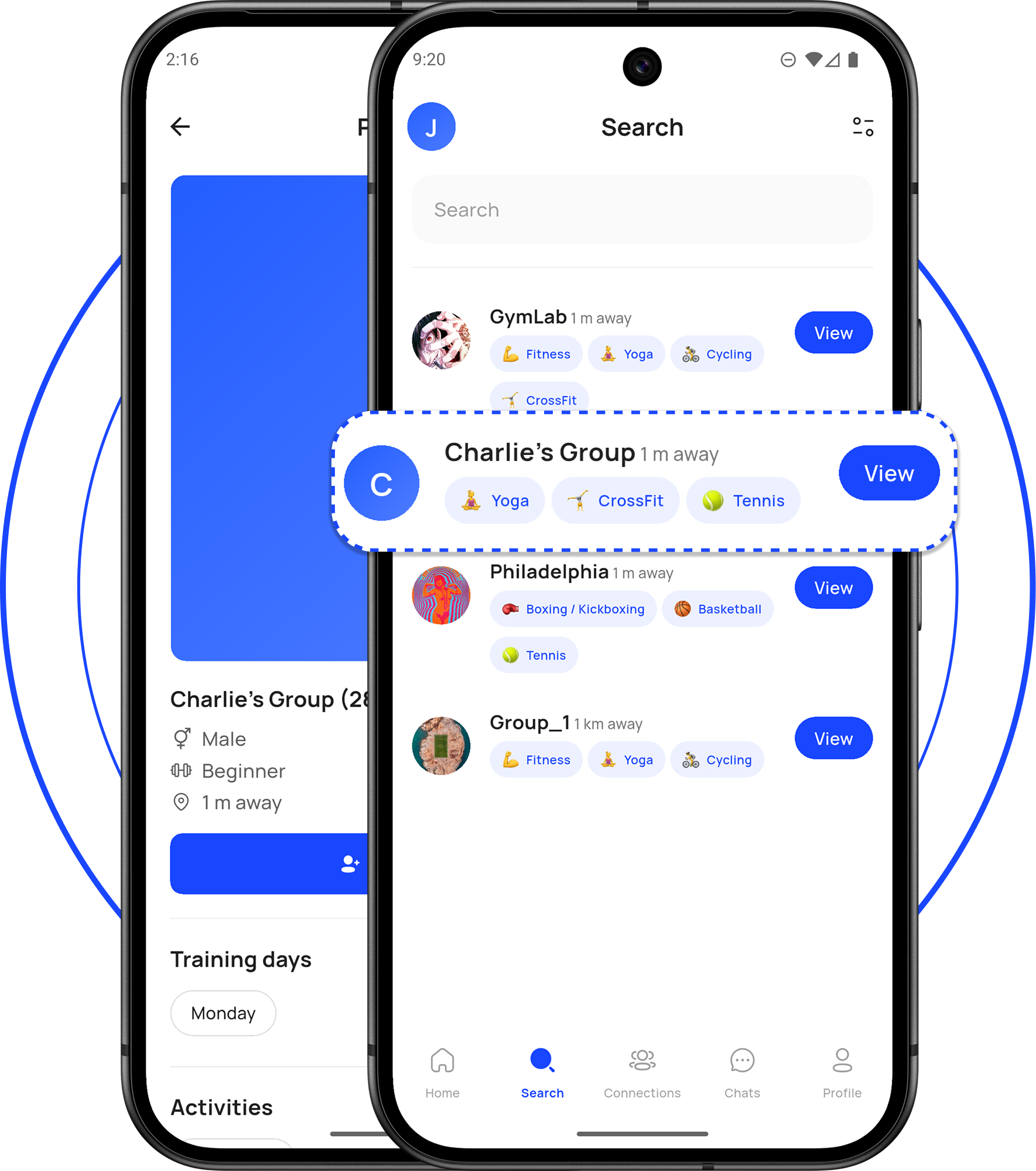 - Match with people by activity, level, location, and schedule